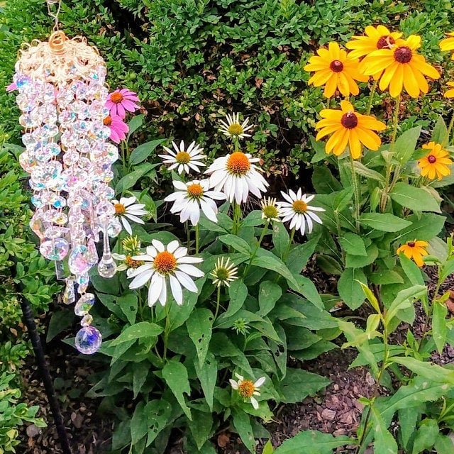 The crystal wind chime includes a 14” chain, one S hook, and a screw-in hook for a secure installation