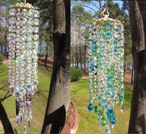 This crystal wind chime is Asfour crystal prisms in clear and AB.